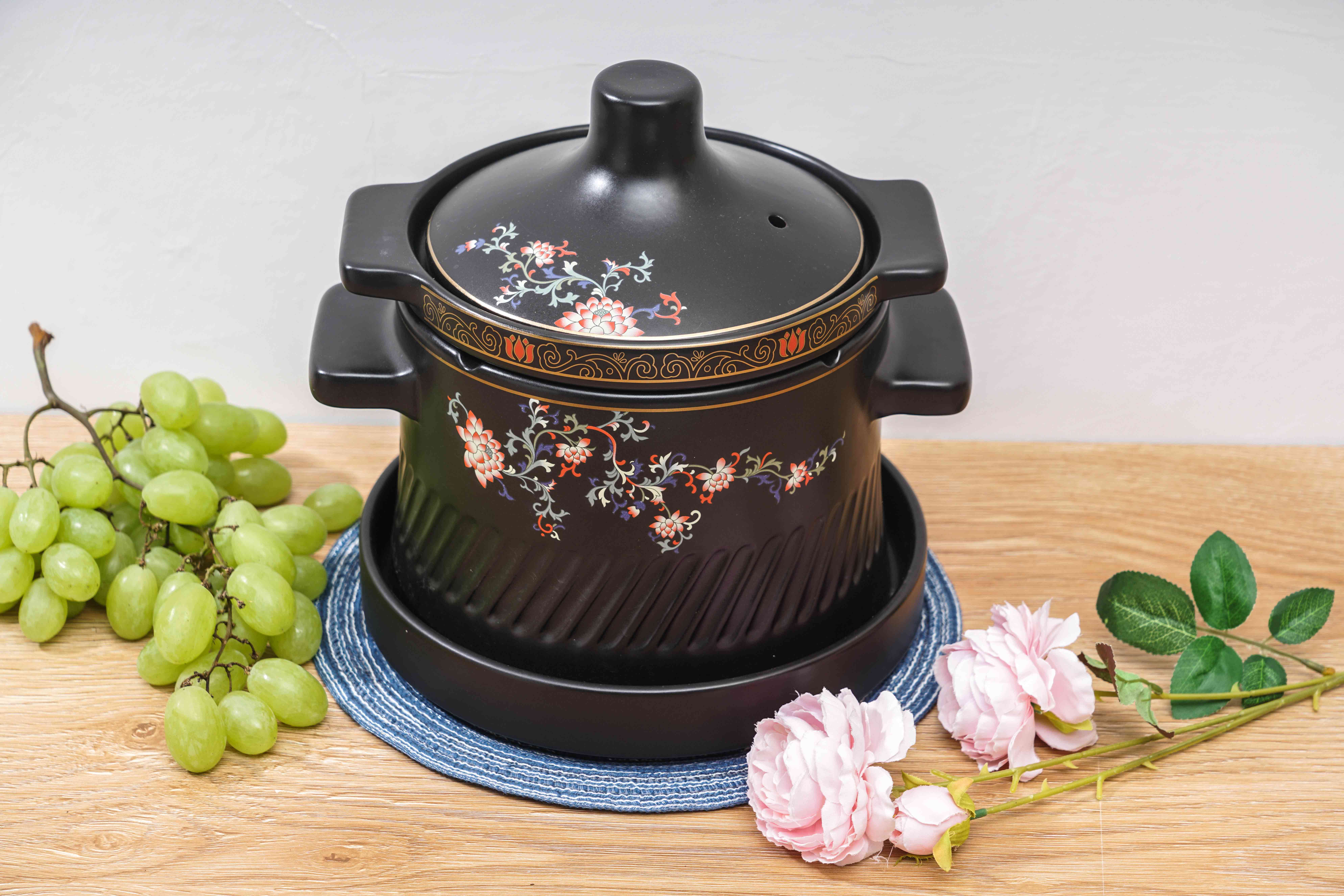 陶瓷焖烧煲是一种以精选锂基矿物原料、石英、高岭土为主的陶瓷质锅具。其中还含有麦饭石及其他微量元素,经过配料、成型、干燥、施釉、烘焙等工艺流程,经受1360度11个小时高温烧制而成。陶瓷锅在烹饪过程中,可分解出钾、钠、钙、镁、磷等多种有益微量元素溶入食物中,经北京营养源检测机构检测,纯陶瓷锅烹饪的食材所保留的营养高于铁锅10%-30%,长期使用有益人体健康。